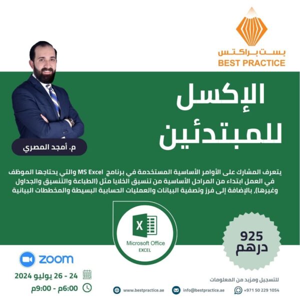 دورة شاملة مصممة لتعريف القادمين الجدد بعالم Microsoft Excel القوي. تغطي هذه الدورة أساسيات برنامج Excel، بما في ذلك التنقل في الواجهة، وإنشاء جداول البيانات وتنسيقها، واستخدام الوظائف والصيغ الأساسية. سيتعلم المشاركون كيفية تنظيم البيانات، وإنشاء الرسوم البيانية، وإجراء تحليل بسيط للبيانات، مما يوفر أساسًا متينًا لمهارات Excel الأكثر تقدمًا. بحلول نهاية الدورة، سيتم تزويد الطلاب بالأدوات الأساسية لإدارة البيانات وتحليلها بكفاءة، مما يجعل Excel رصيدًا قيمًا في السياقات الشخصية والمهنية.