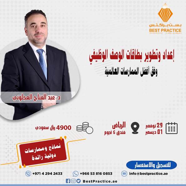 Developing the participants’ skills in the field of job analysis and description, by introducing them to the scientific foundations of the methods and mechanisms of job analysis and description, taking into account the system of job analysis and description approved by the Federal Authority for Government Human Resources, and applying and practicing best practices in the specific field, which will reflect positively on individual and institutional performance.
